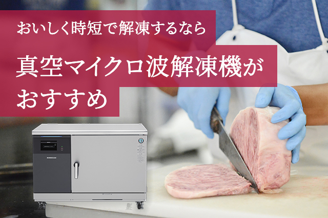 冷凍肉をおいしく時短で解凍するなら、ホシザキの真空マイクロ波解凍機がおすすめです。