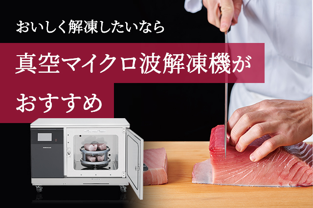 マグロをおいしく、短時間で解凍したいという方には、真空マイクロ波解凍機がおすすめです。