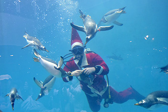 | 12.02サンタダイバーがペンギンに水中ランチをお届け!(長崎ペンギン水族館/長崎県) |