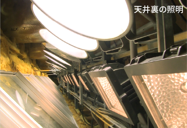 南極の光を再現する設備は天井裏に設置されています。ペンギンたちは光で季節を感じ取っているので、とくに照明のメンテナンスが大切なんです。照明は南極にある昭和基地の日照時間をもとに設定してあり、明るさを細かく調整することで、繁殖や換羽の時期に合わせた季節を作り出しています。水槽の中を大きく6つの季節に分け、ペンギンたちが健康に暮らせる環境を整えています。